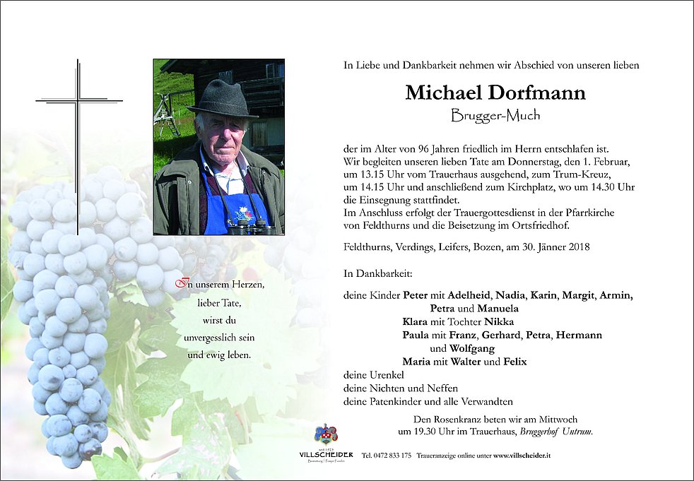 um 13.15 Uhr vom Trauerhaus ausgehend, zum Trum-Kreuz,