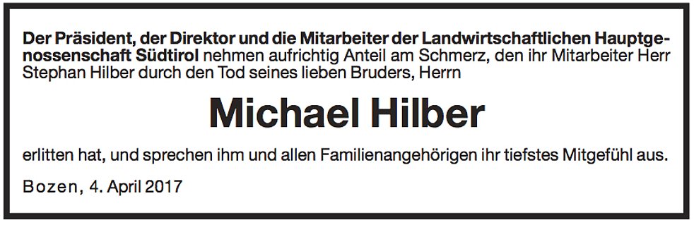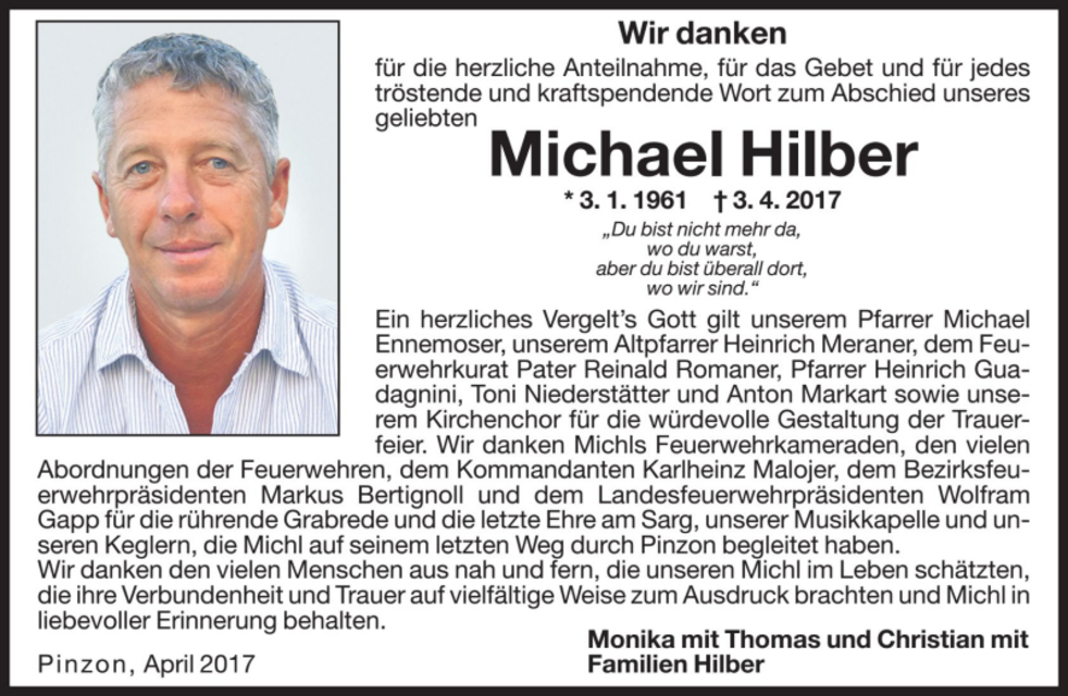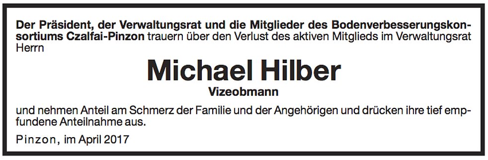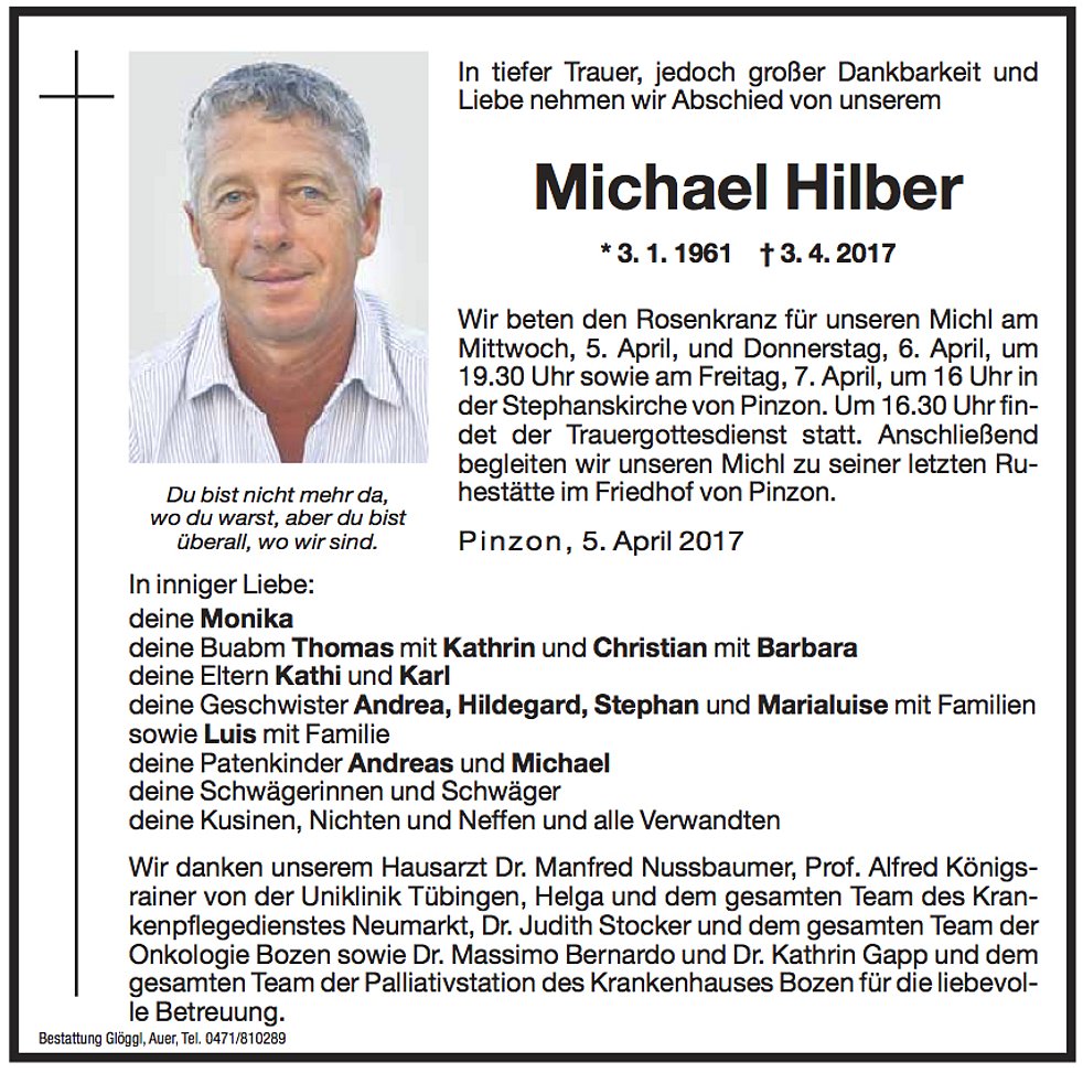 Um 16.30 Uhr findet der Trauergottesdienst statt. Anschließend begleiten wir unseren Michl zu seiner letzten Ruhestätte im Friedhof von Pinzon.