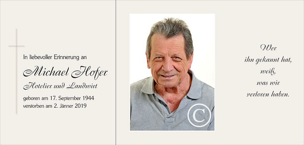 Wir begleiten unseren lieben Tate am Samstag, dem 5. Jänner, um 13.30 Uhr vom Wirtherhof ausgehend, zum Gottesdienst um 14 Uhr in die Pfarrkirche von Oberrasen.