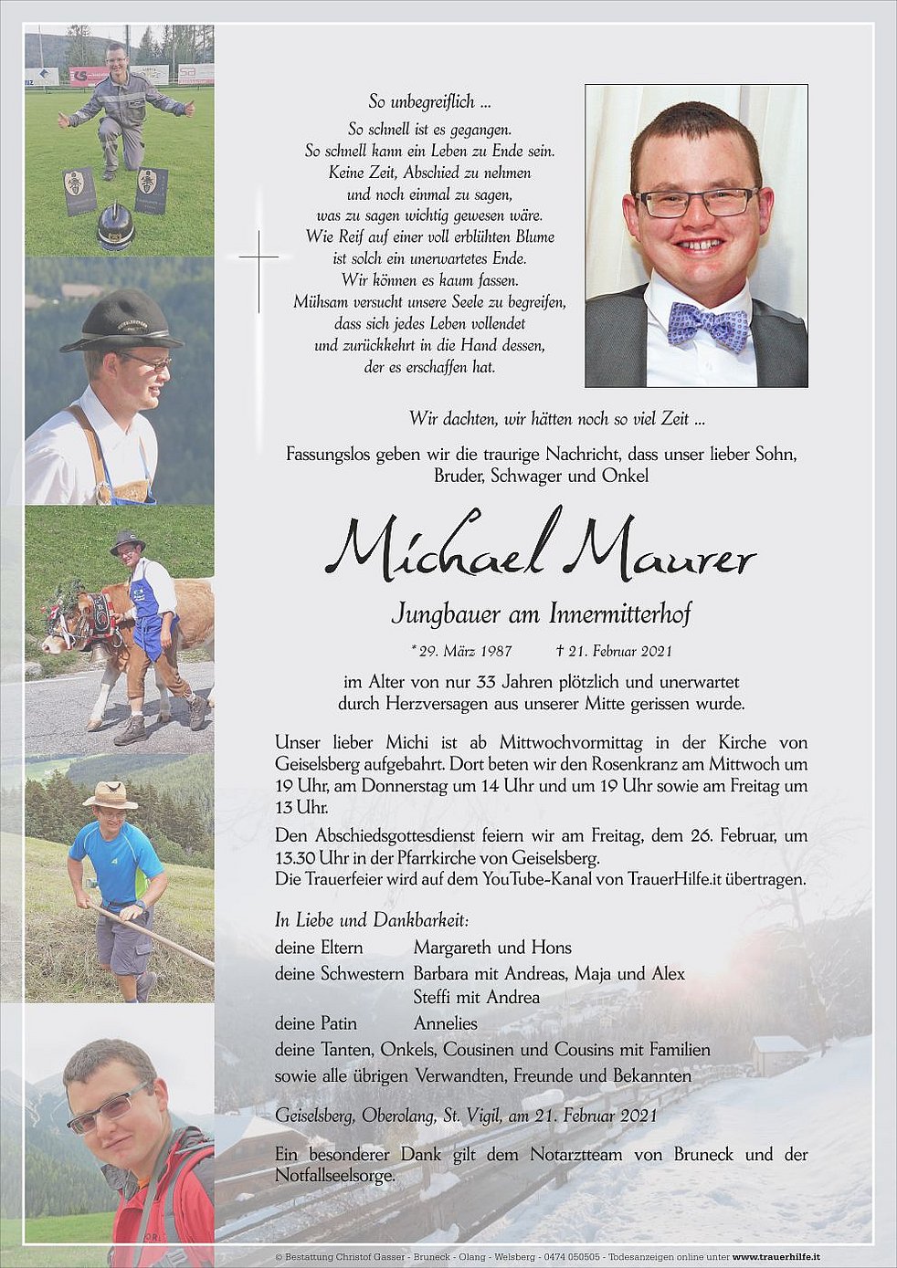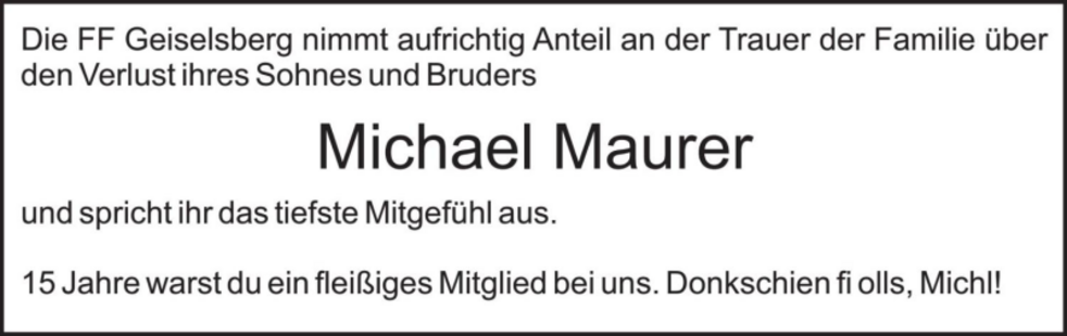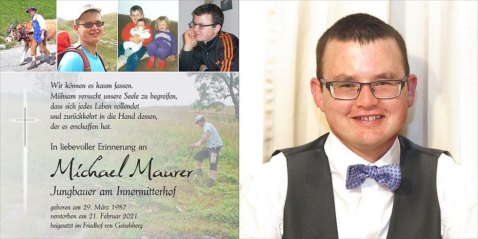 Unser lieber Michi ist ab Mittwochvormittag in der Kirche von Geiselsberg aufgebahrt. Dort beten wir den Rosenkranz am Mittwoch um 19 Uhr, am Donnerstag um 14 Uhr und um 19 Uhr sowie am Freitag um 13 Uhr.