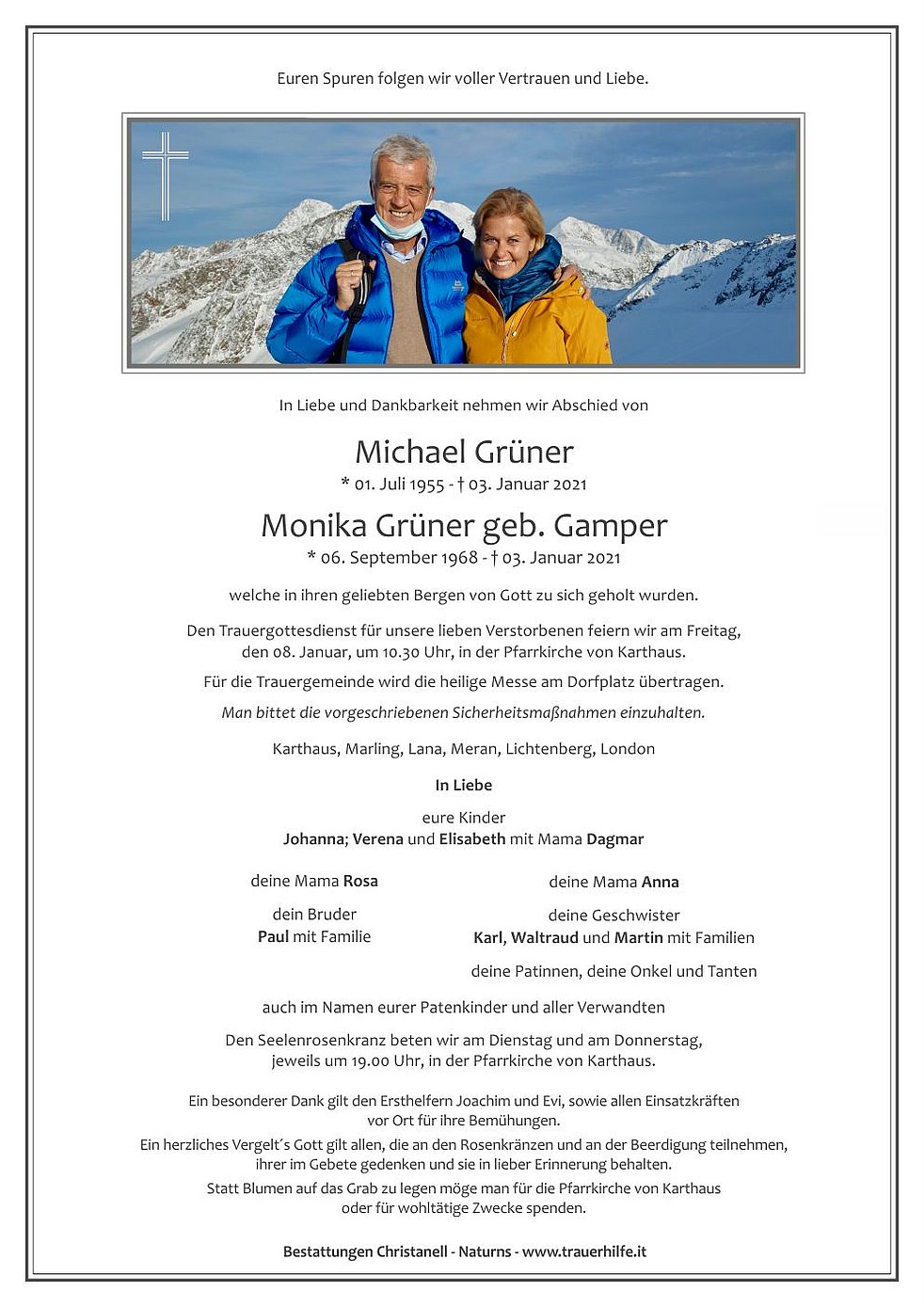 Lieber Paul, liebe Trauerfamilien Grüner und Gamper,