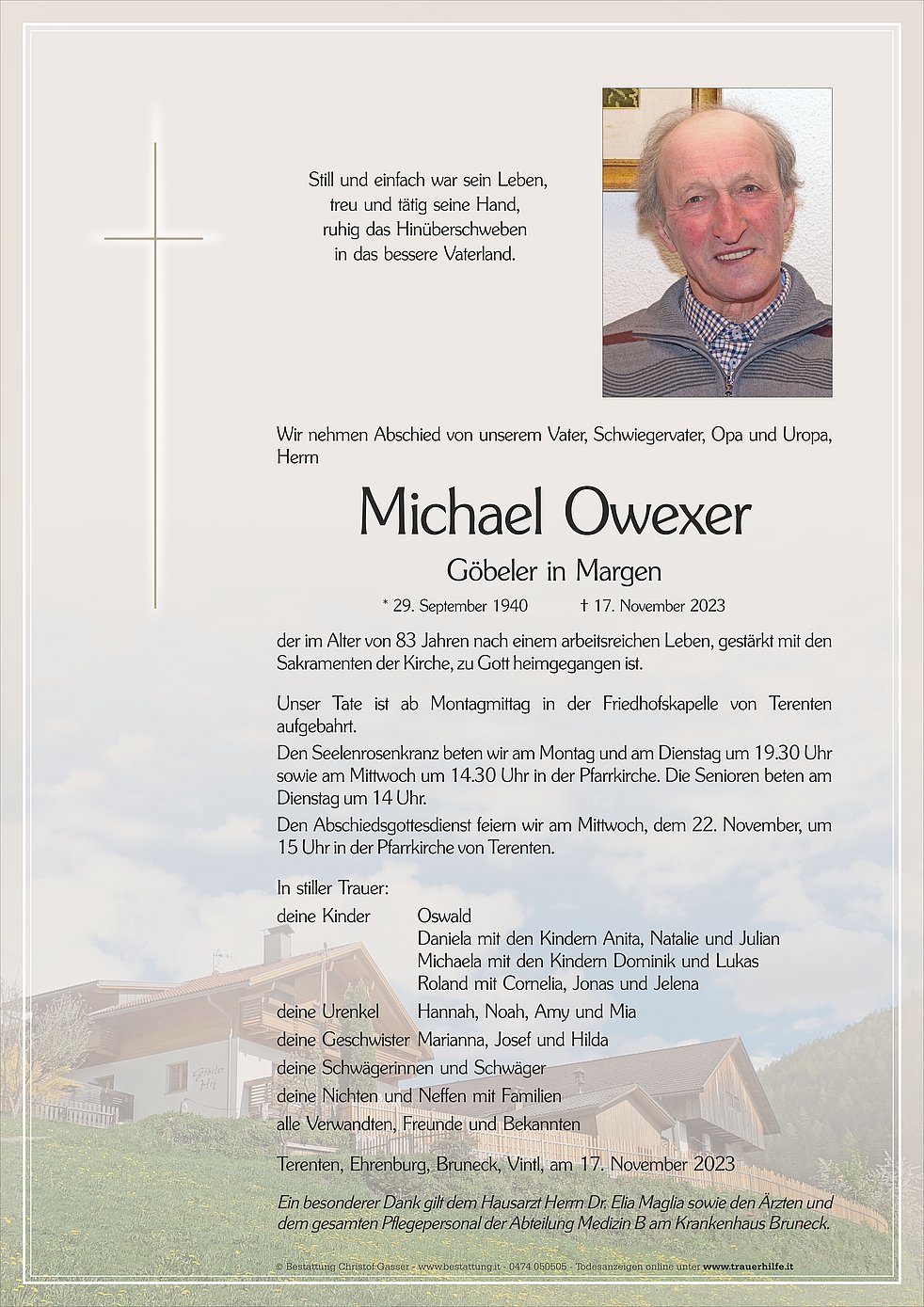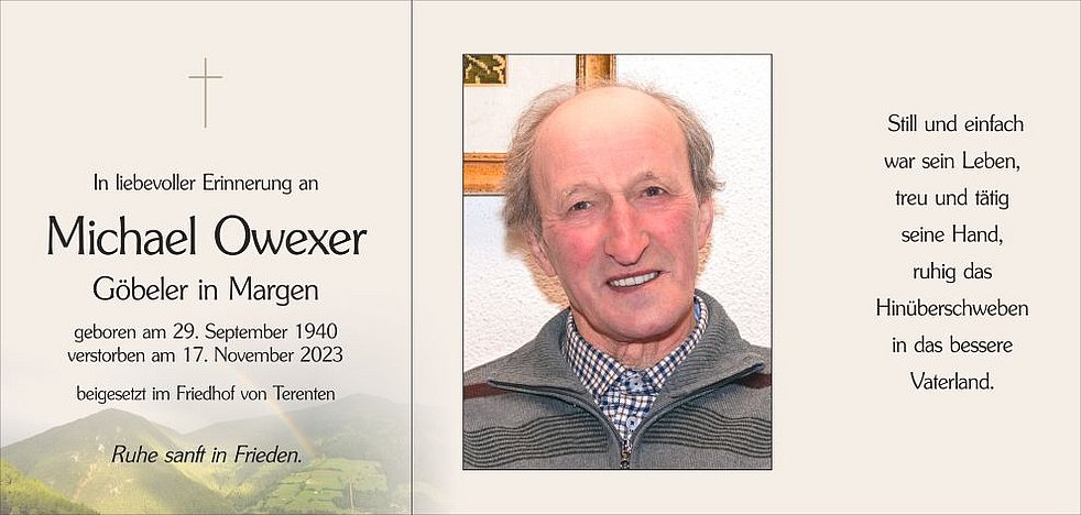 Unser Tate ist ab Montagmittag in der Friedhofskapelle von Terenten aufgebahrt.