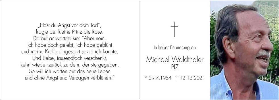 Den Abschiedsgottesdienst feiern wir am Donnerstag, dem 16. Dezember um 14 Uhr in der Stiftspfarrkirche Gries, anschließend begleiten wir unseren lieben Verstorbenen im engsten Familienkreis zur Beisetzung auf den Friedhof von Girlan.