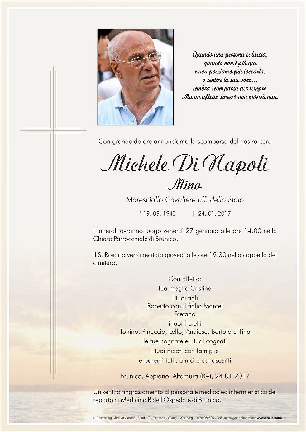 Der Abschiedsgottesdienst findet am Freitag, dem 27. Jänner, um 14 Uhr in der Pfarrkirche von Bruneck statt.