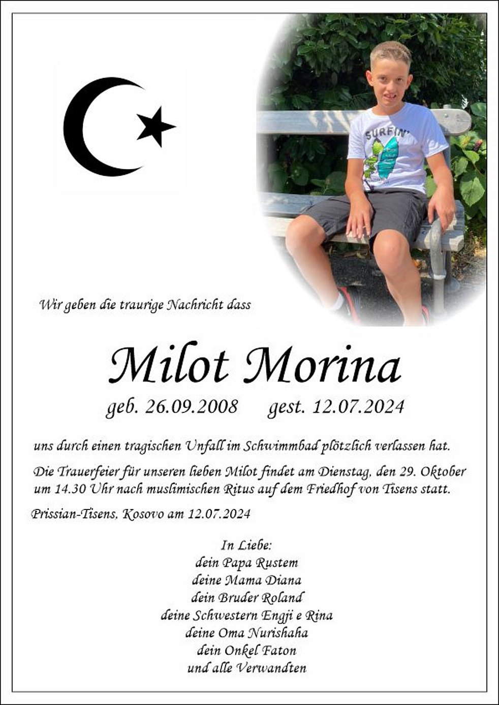 Trauerfeier: 29.10. - 14:30 Uhr Friedhof Tisens