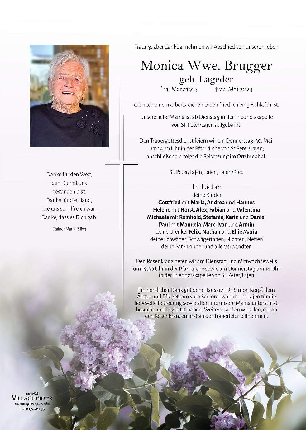 Begräbnisgottesdienst: 30.05. - 14:30 Uhr St. Peter/Lajen