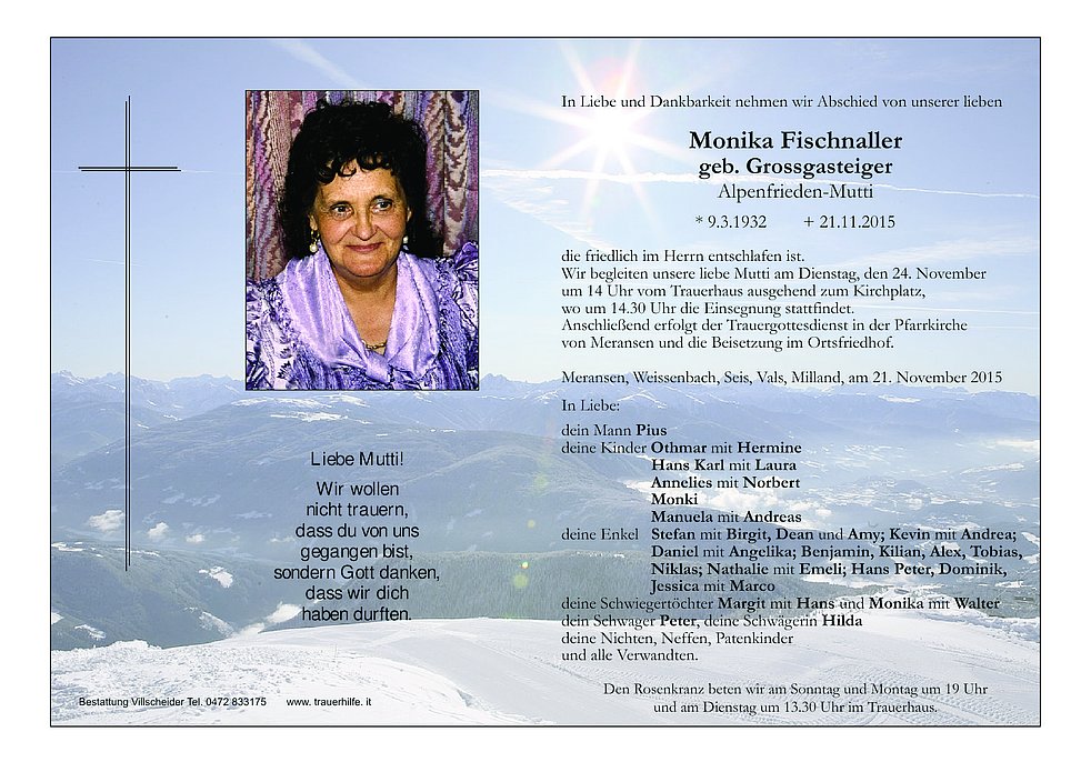 von Meransen und die Beisetzung im Ortsfriedhof.