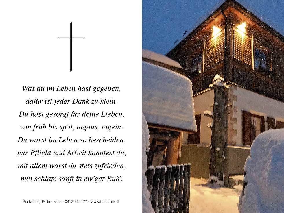 Du warst im Leben so bescheiden, nur Pflicht und Arbeit kanntest du,