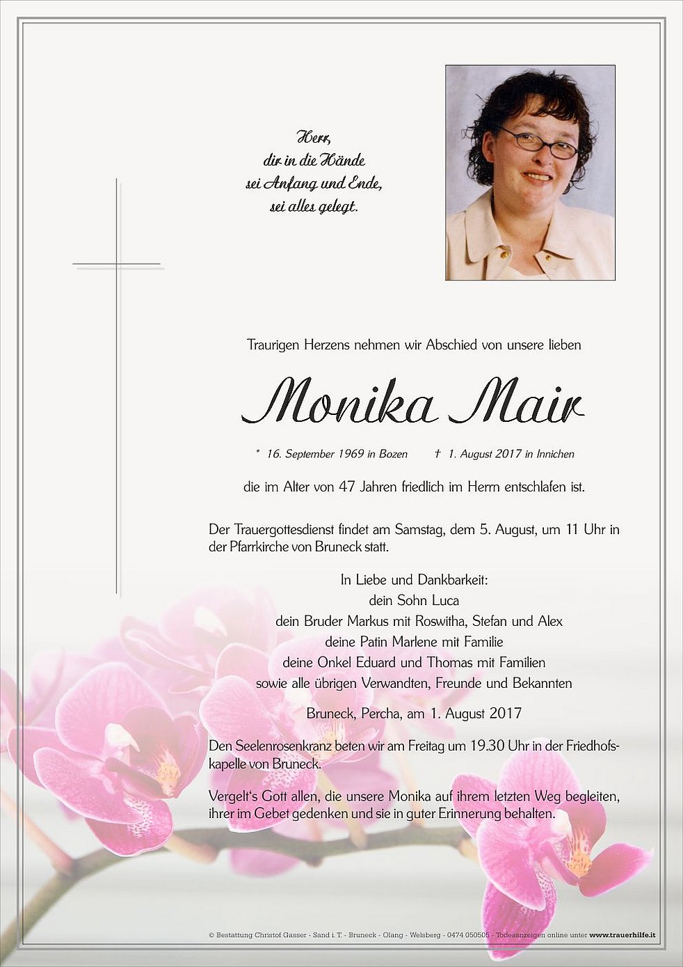 * 16. September 1969 in Bozen † 1. August 2017 in Innichen