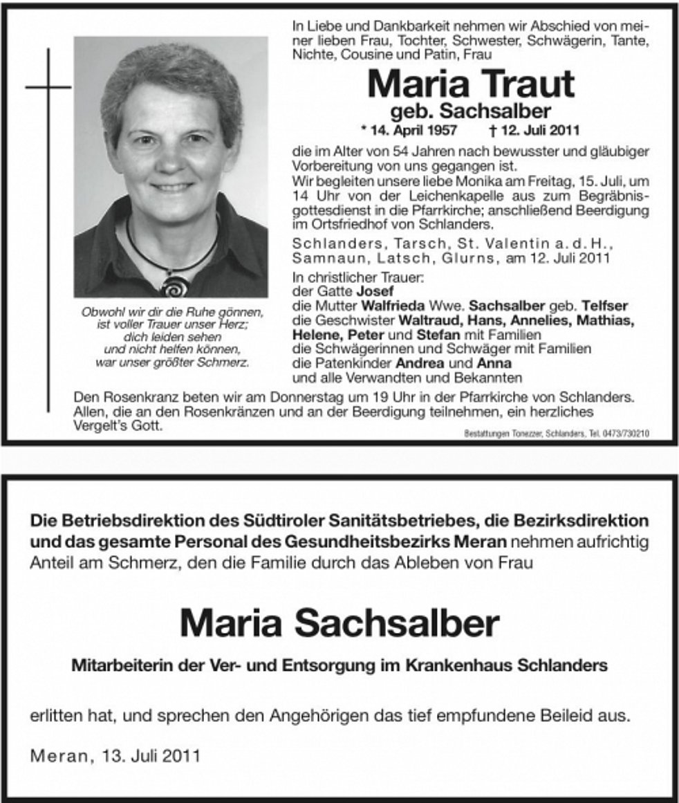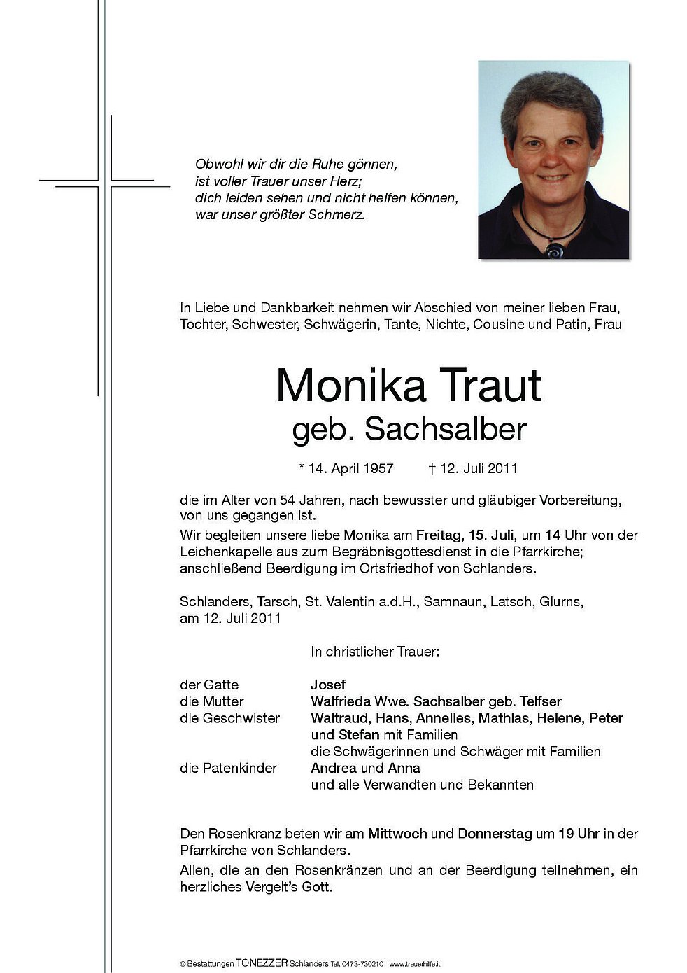 Wir begleiten unsere liebe Monika am Freitag, 15. Juli, um 14 Uhr von der Leichenkapelle aus zum Begräbnisgottesdienst in die Pfarrkirche;