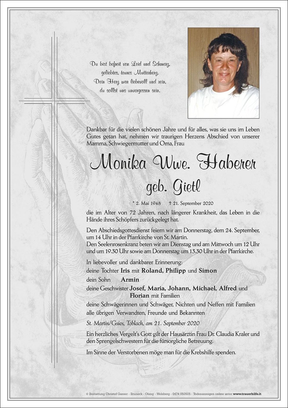 Dankbar für die vielen schönen Jahre und für alles, was sie uns im Leben Gutes getan hat, nehmen wir traurigen Herzens Abschied von unserer Mamma, Schwiegermutter und Oma, Frau