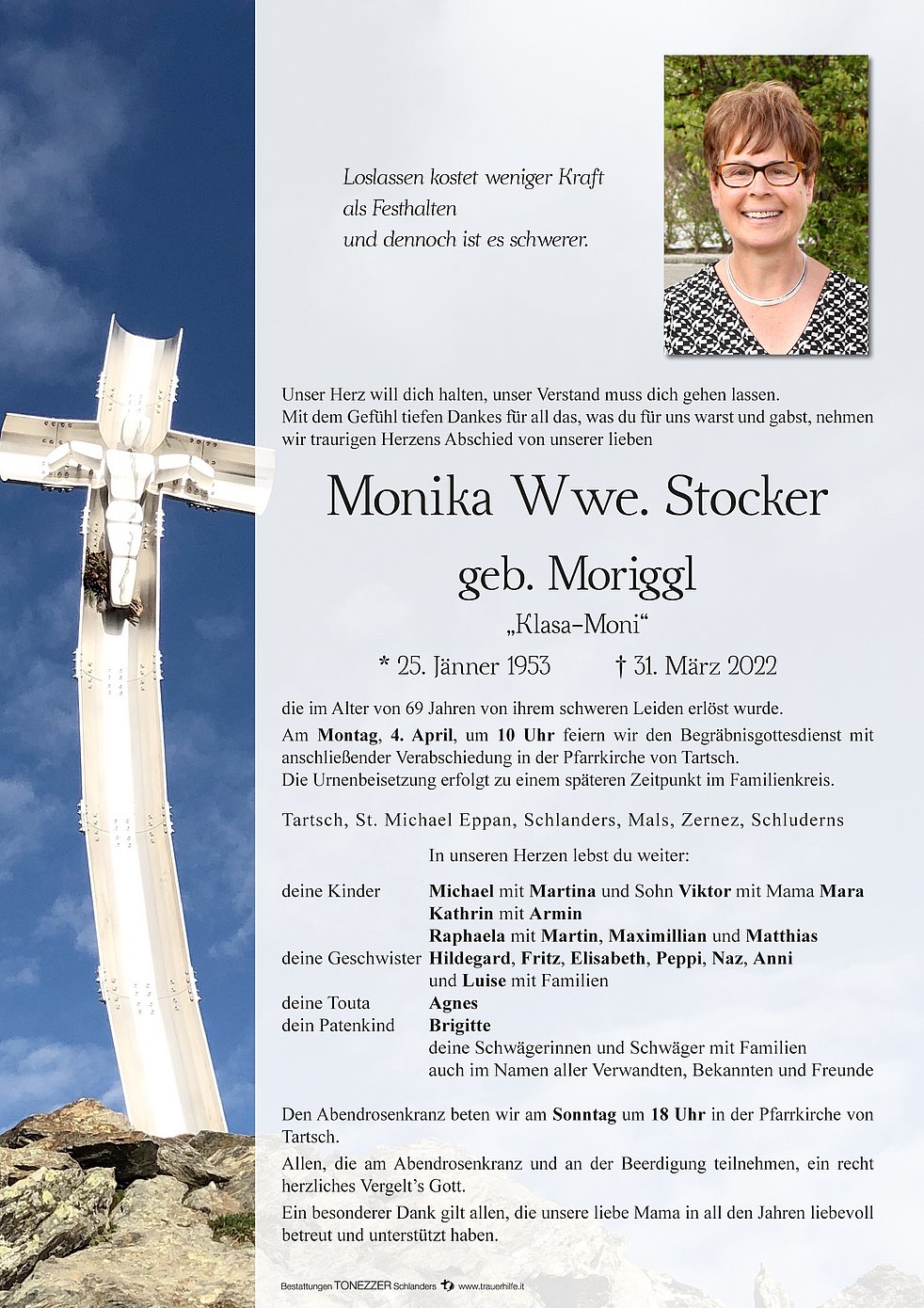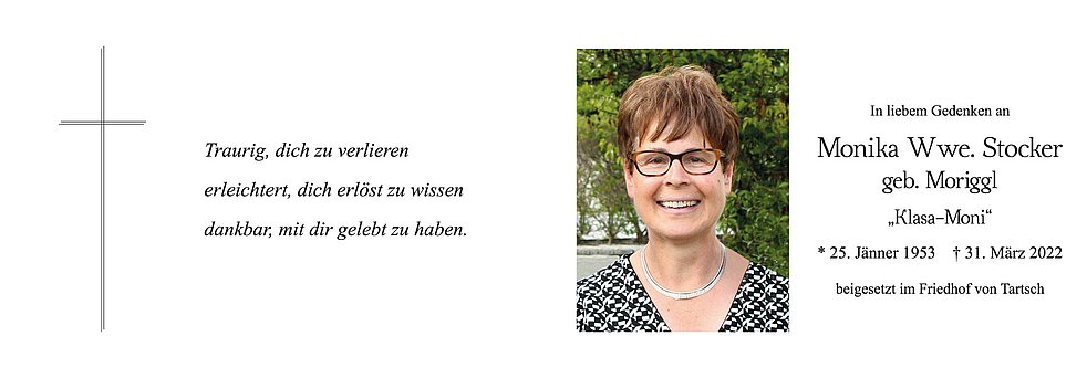 Am Montag, 4. April, um 10 Uhr feiern wir den Begräbnisgottesdienst mit anschließender Verabschiedung in der Pfarrkirche von Tartsch.