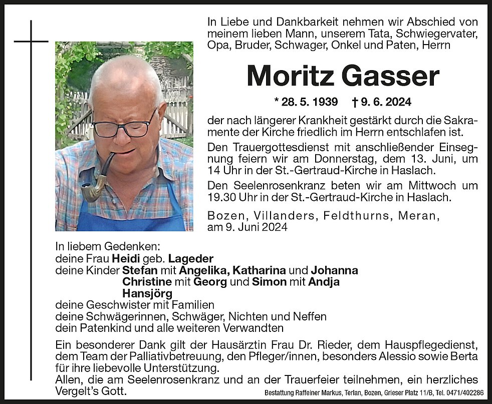 Den Trauergottesdienst mit anschließender Einsegnung feiern wir am Donnerstag, dem 13. Juni, um 14 Uhr in der St. Gertraud-Kirche in Haslach.