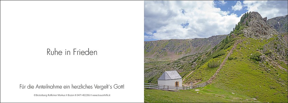 Ein besonderer Dank gilt der Hausärztin frau Dr. Rieder, dem Hauspflegedienst, dem Team der Palliativbetreuung, den Pfleger/Innen besonders Alessio sowie Berta für ihre liebevolle Unterstützung.