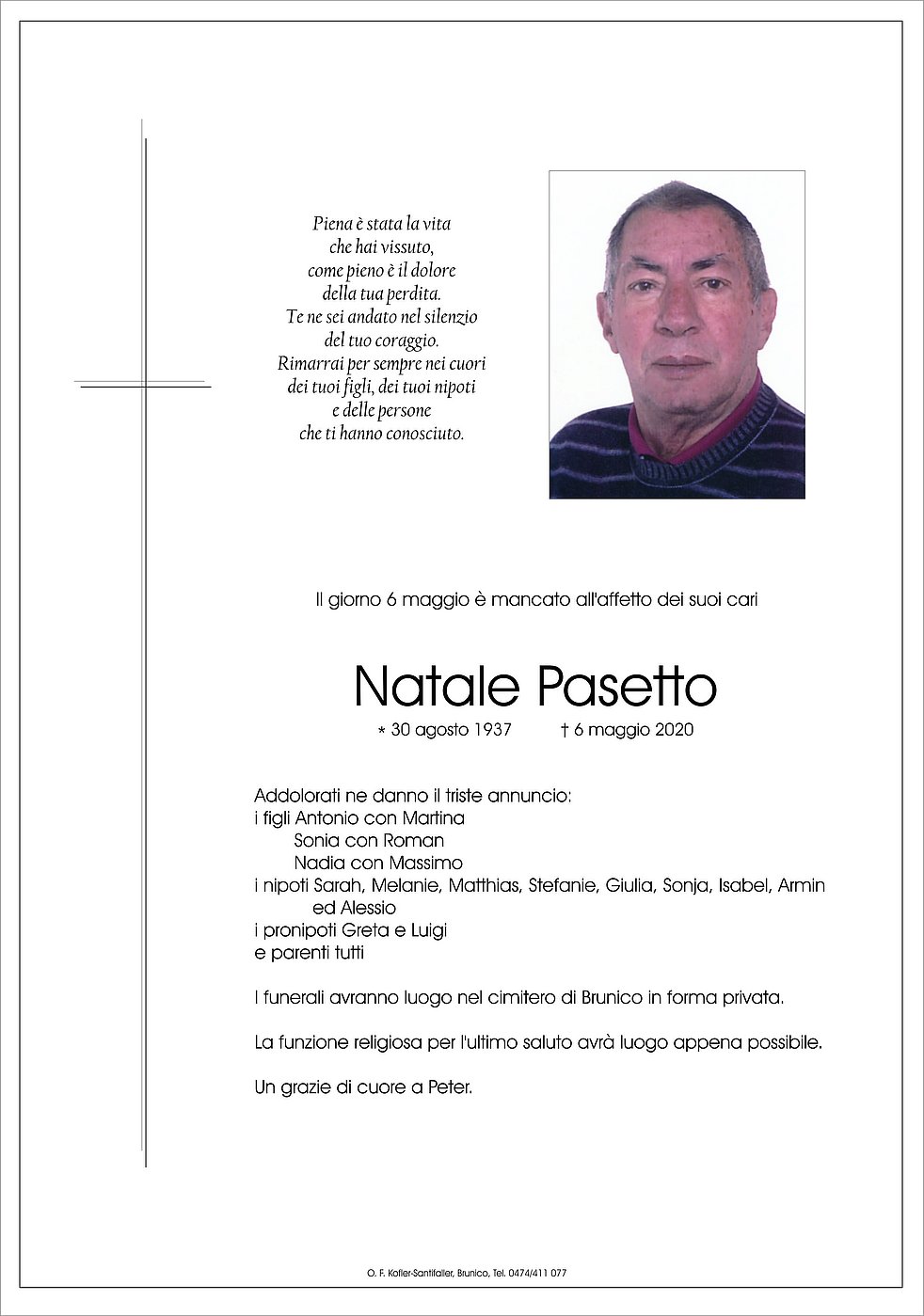 Die Nachricht vom Tod deines lieben Vaters hat mich sehr getroffen.Ich spreche dir,deinen Kindern und allen Angehörigen unser tief empfundenes Beileid aus.Riposa in Pace