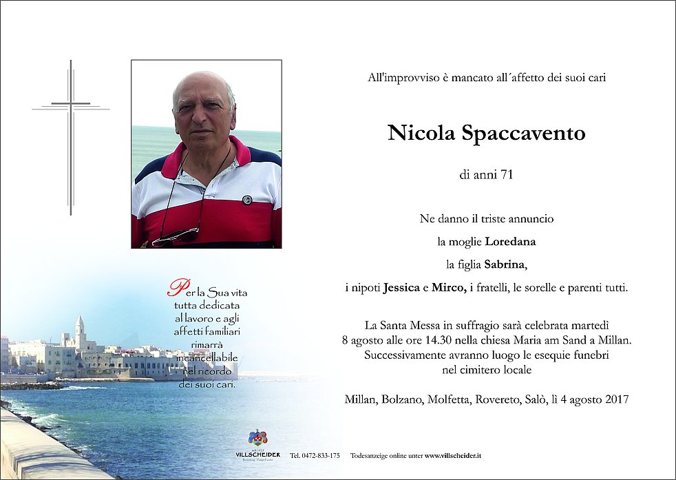 Millan, Bolzano, Molfetta, Rovereto, Salò, lì 4 agosto 2017