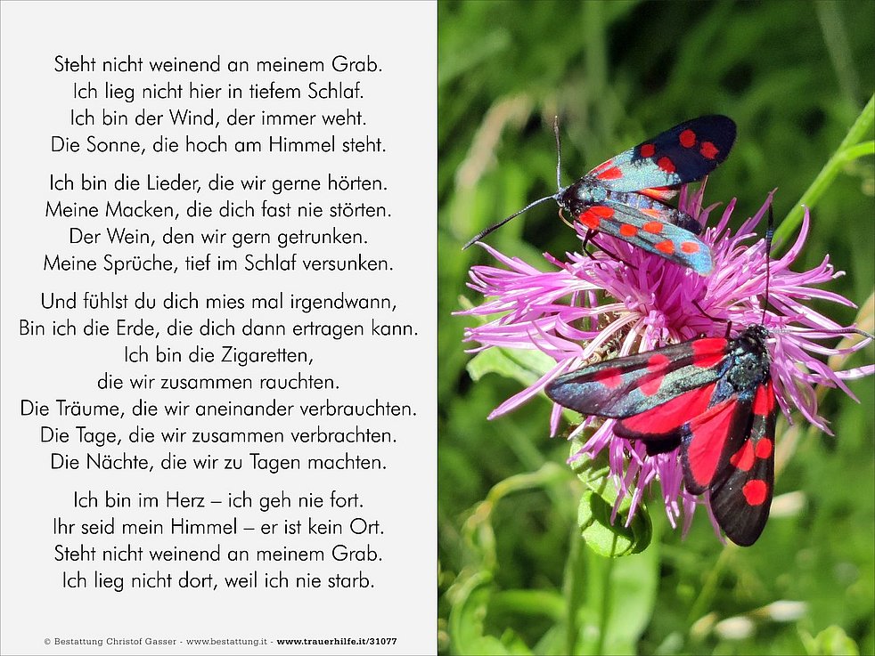 Anstelle von Blumen möge man für wohltätige Zwecke spenden.