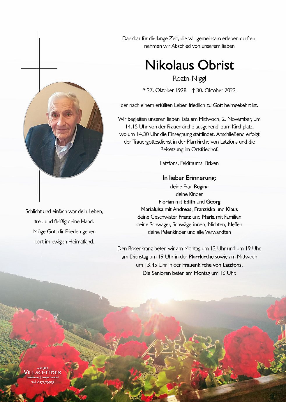 Begräbnisgottesdienst: 02.11. - 14:30 Uhr Latzfons