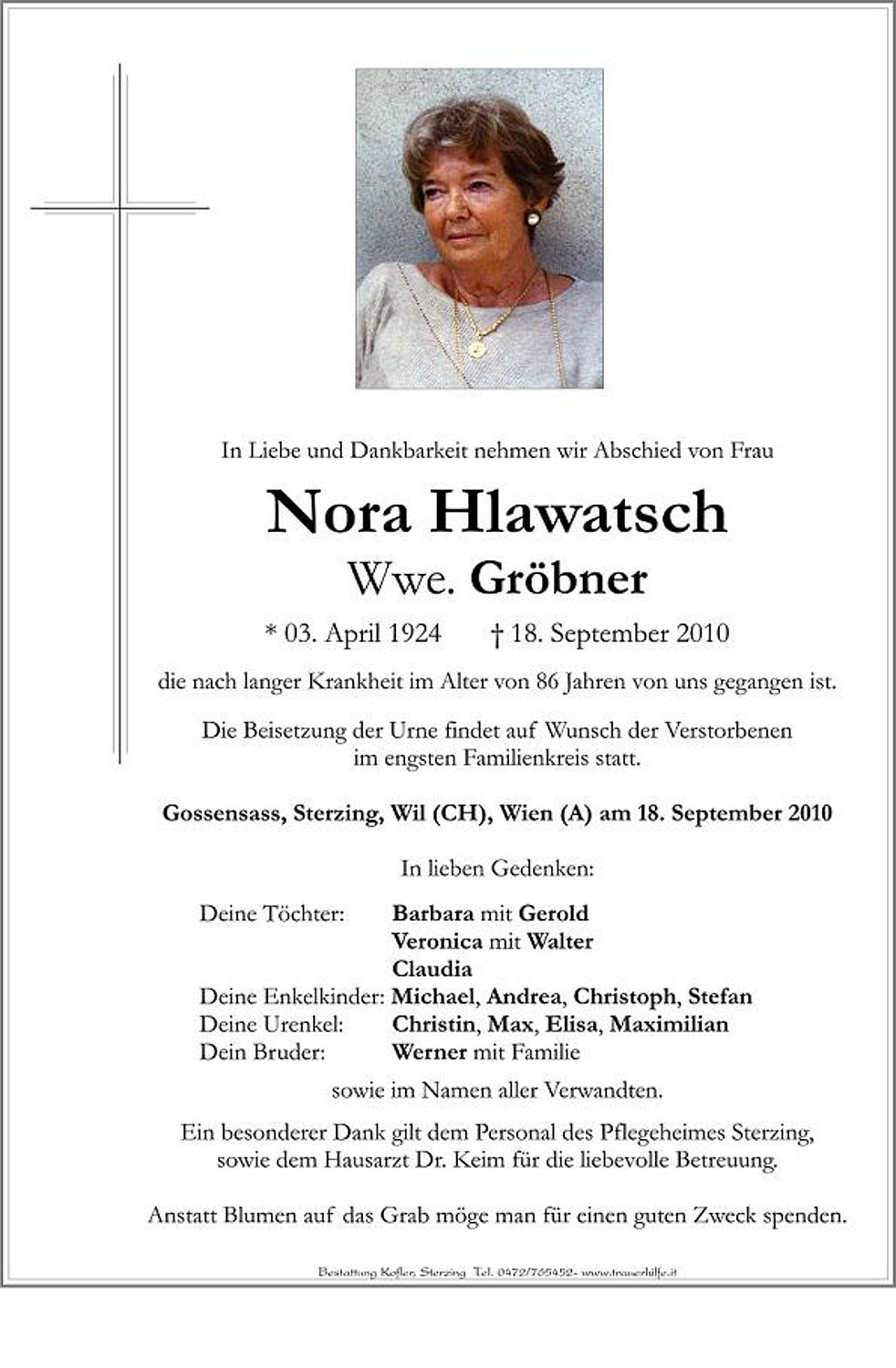 Die Beisetzung der Urne findet auf Wunsch der Verstorbenen