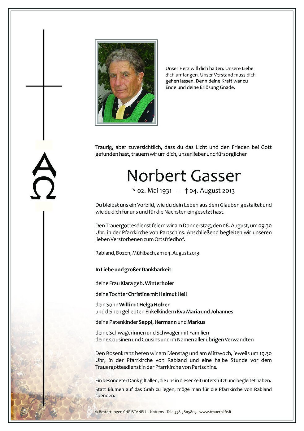 Statt Blumen auf das Grab zu legen, möge man für die Pfarrkirche von Rabland spenden.