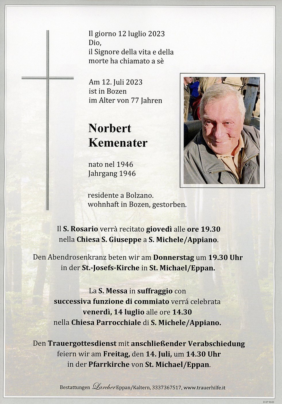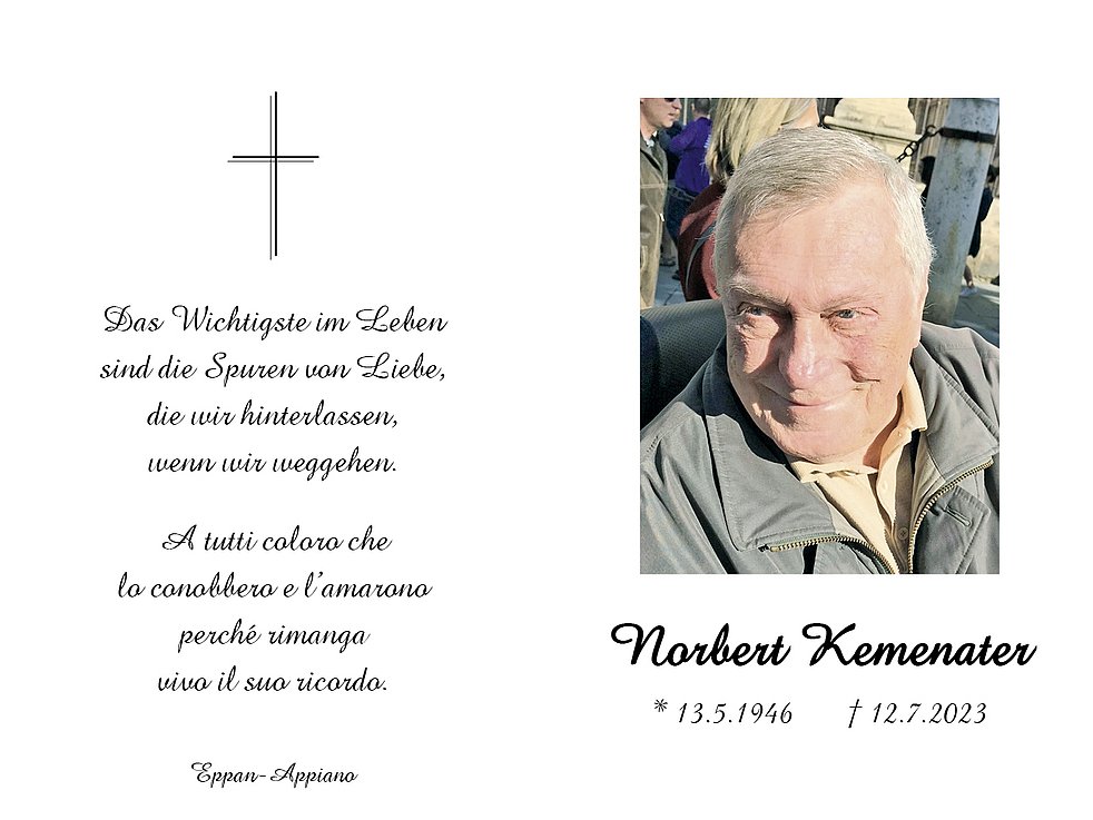 Trauerfeier: 14.07. - 14:30 Uhr Pfarrkirche St. Michael/Eppan