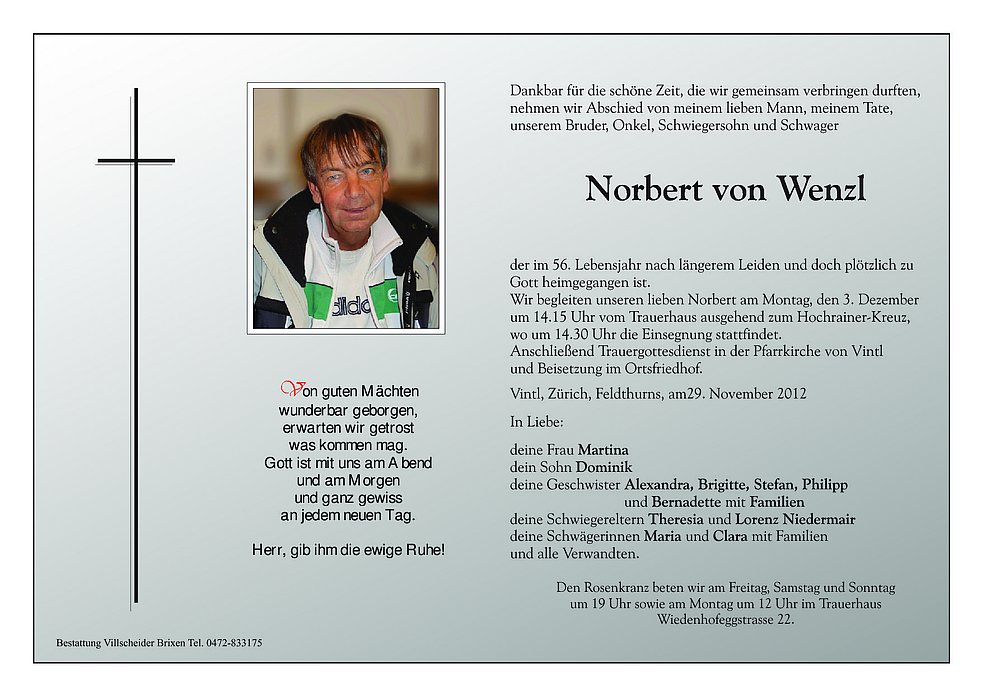 Wir begleiten unseren lieben Norbert am Montag, den 3. Dezember