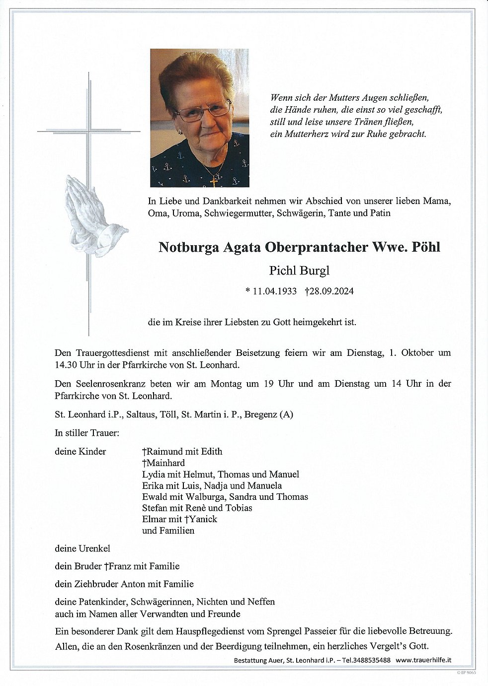 Notburga Agata Oberprantacher Wwe. Pöhl