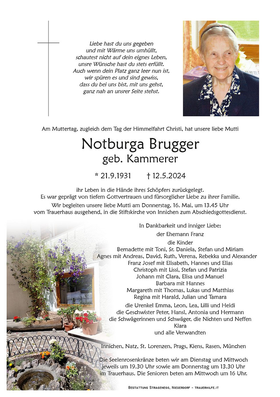Liebe Agnes, liebe Familie Brugger, wir nehmen Anteil am Schmerz und der Trauer über den Heimgang deiner/eurer geliebten Mutter. Viel Kraft und Zuversicht in dieser schweren Zeit. Wir sind in Gedanken bei dir/euch.