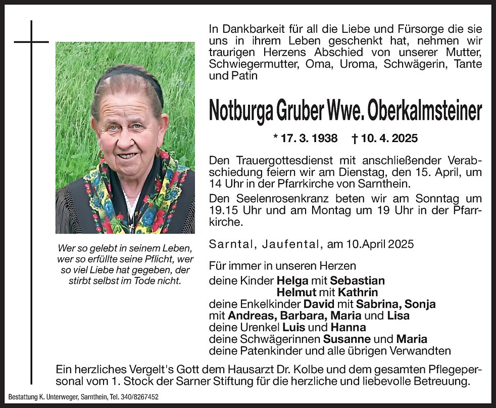 Notburga Gruber Wwe. Oberkalmsteiner