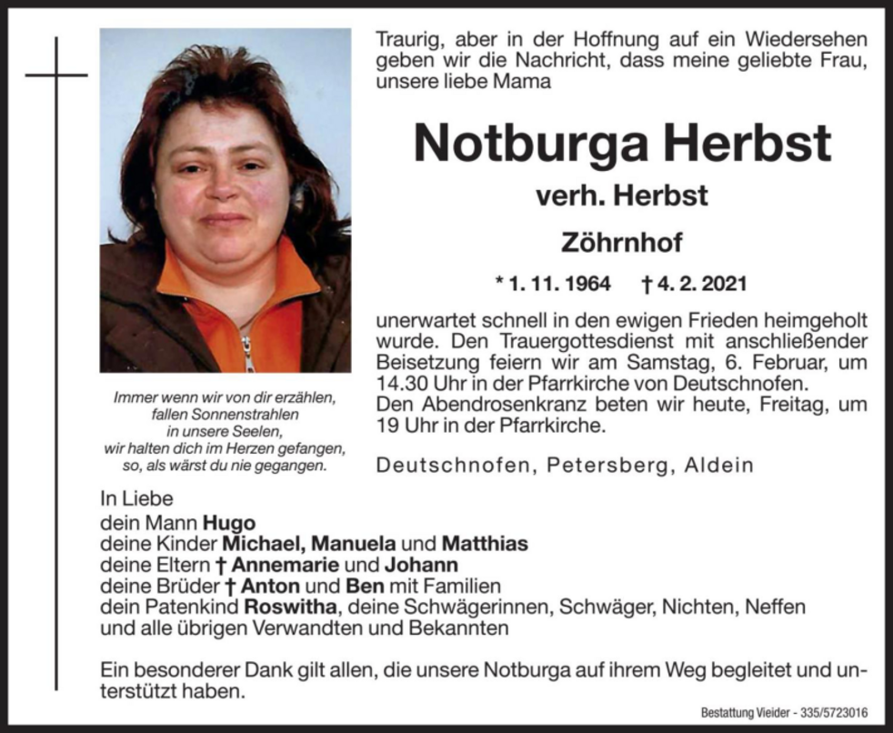 Den Trauergottesdienst mit anschließender Beisetzung feiern wir am Samstag, 6. Februar, um 14.30 Uhr in der Pfarrkirche von Deutschnofen.