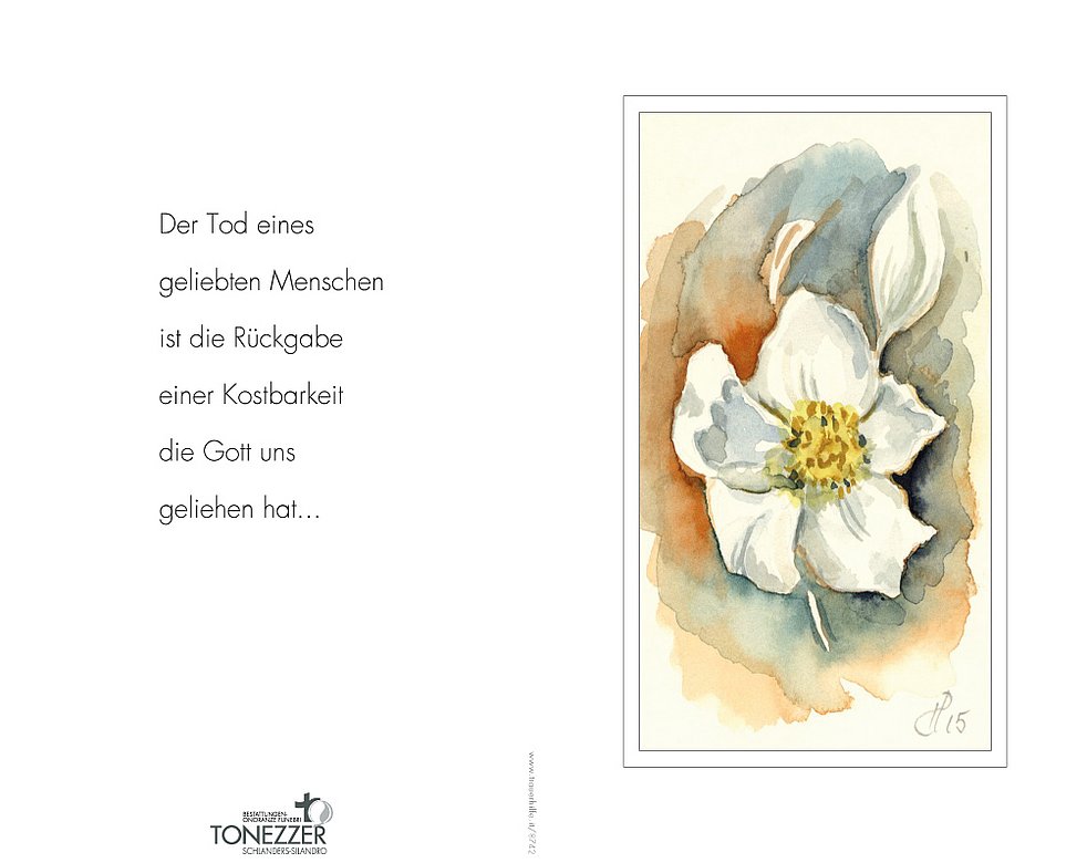 Ein besonderer Dank gilt dem gesamten Personal des Bürgerheimes St. Nikolaus v.d.Fl. sowie des Krankenhauses von Schlanders für die liebevolle und fürsorgliche Betreuung.