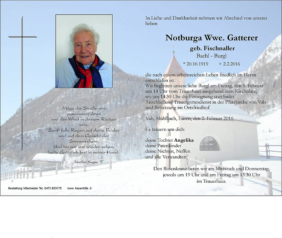 Wir begleiten unsere liebe Burgl am Freitag, den 5. Februar