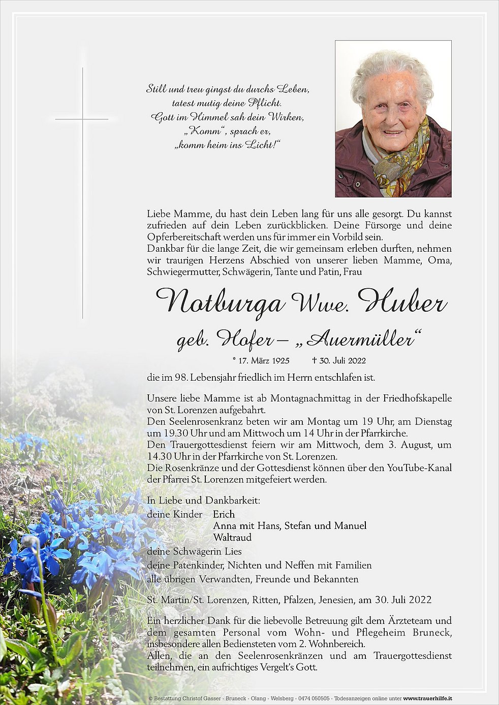 Den Trauergottesdienst feiern wir am Mittwoch, dem 3. August, um 14.30 Uhr in der Pfarrkirche von St. Lorenzen.