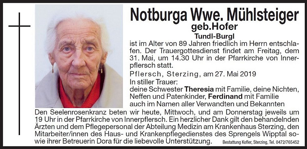 Notburga Wwe. Mühlsteiger geb. Hofer