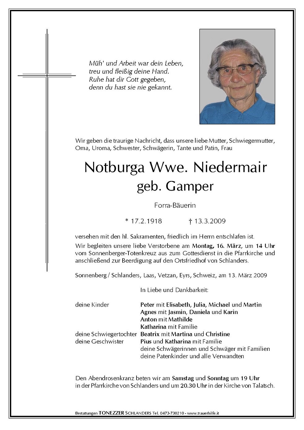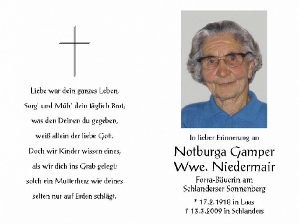Wir begleiten unsere liebe Verstorbene am Montag, 16. März, um 14 Uhr vom Sonnenberger-Totenkreuz aus zum Gottesdienst in die Pfarrkirche und anschließend zur Beerdigung auf den Ortsfriedhof von Schlanders.