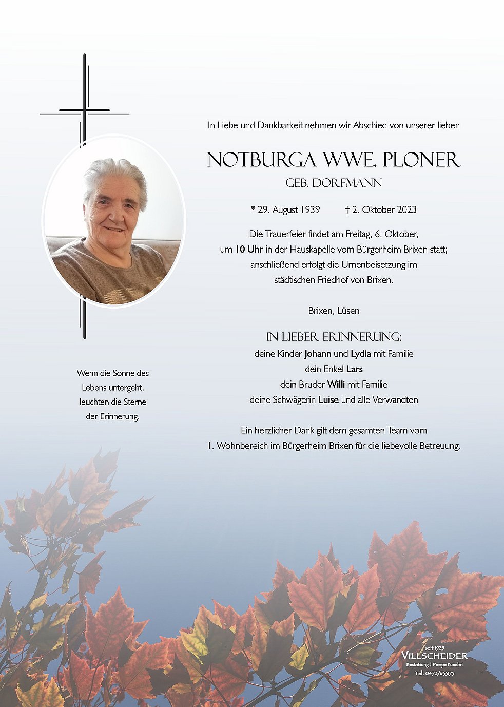 Urnenbeisetzung: 06.10. - 10:00 Uhr Brixen; Bressanone