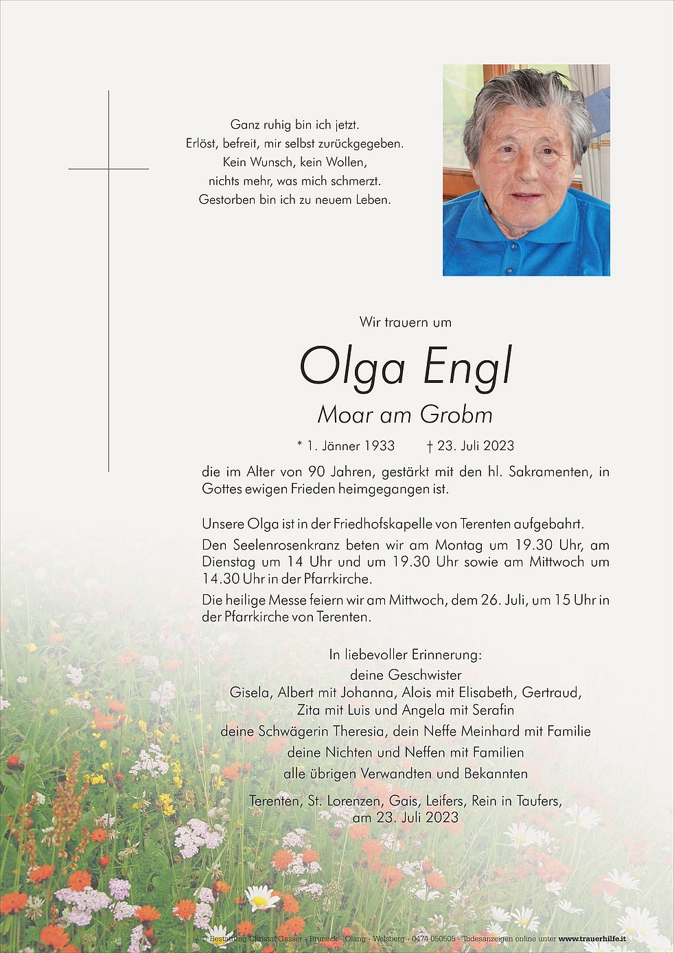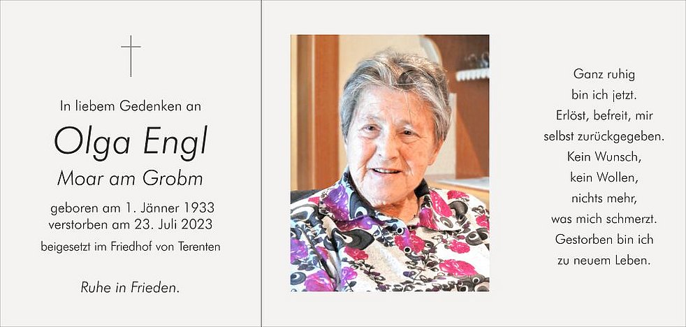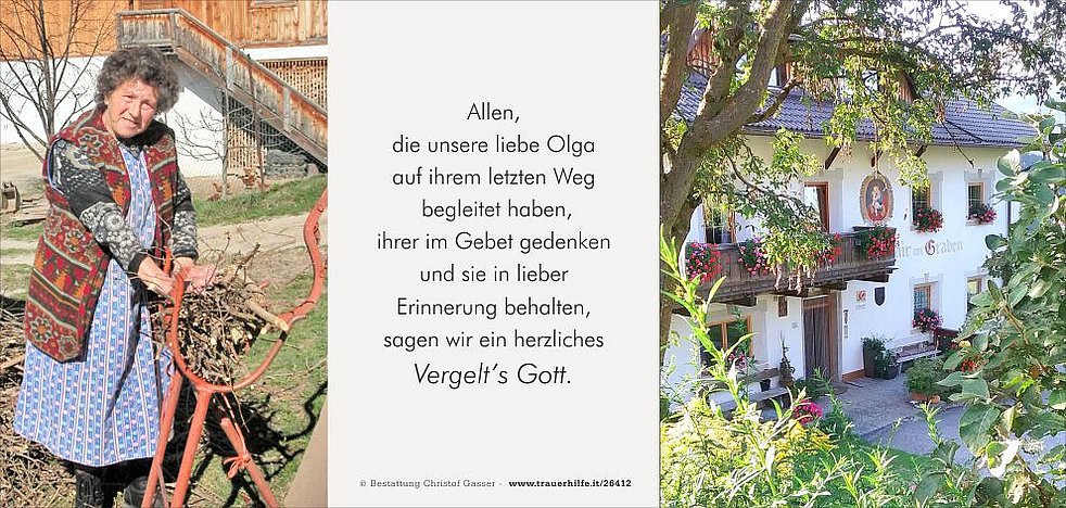 Unsere Olga ist in der Friedhofskapelle von Terenten aufgebahrt.