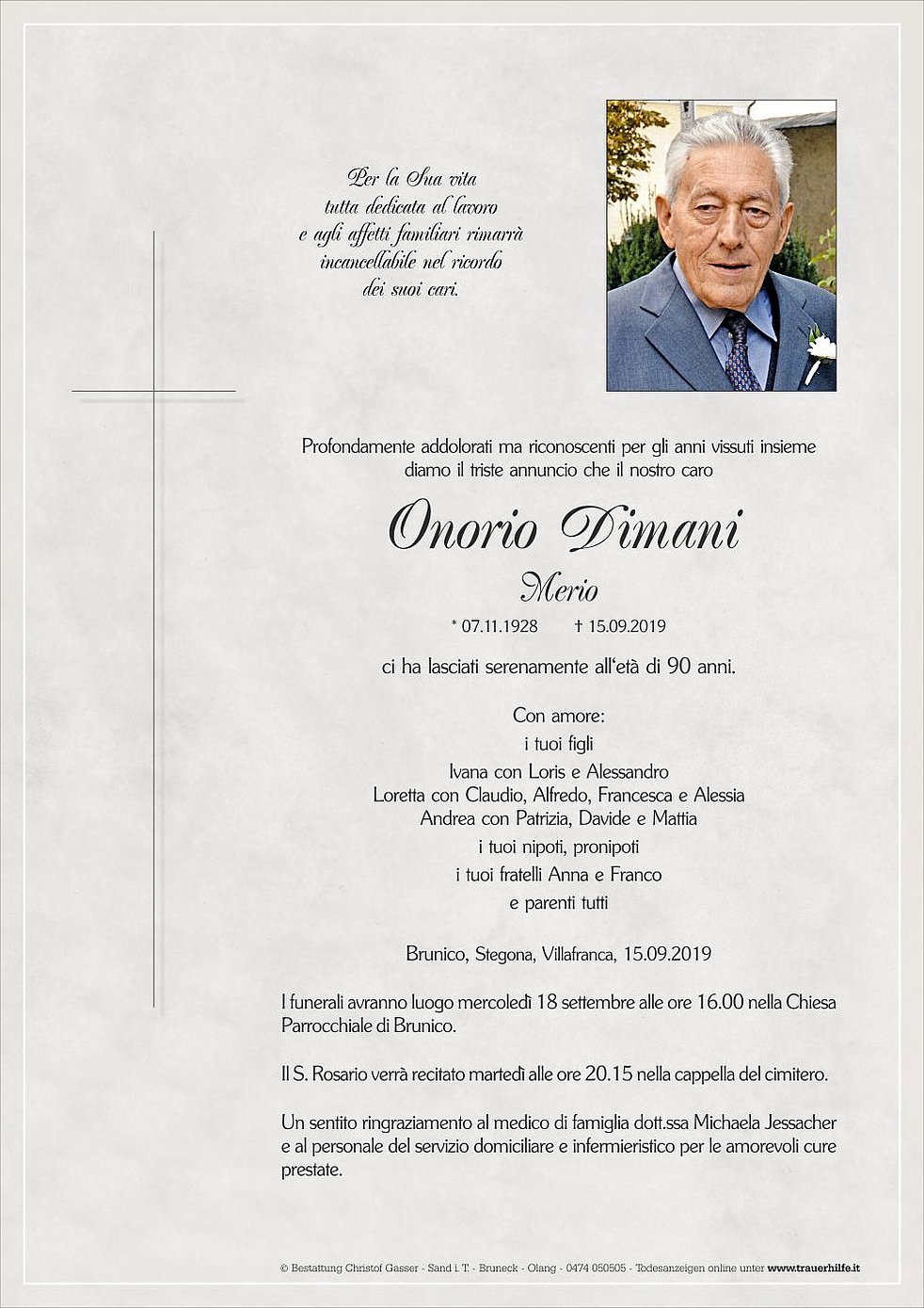 Der Abschiedsgottesdienst findet am Mittwoch, dem 18. September, um 16 Uhr in der Pfarrkirche von Bruneck statt.