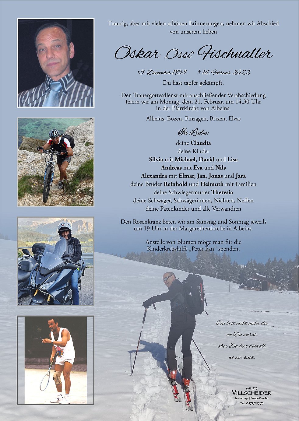 Lieber oskar du warst für mich ein sehr geschetzter Respektvoller Arbeitskolege mit dir habe ich 23 jahre gearbeitet danke für die bereichernde Zeit ich wünsche dir von ganzen Herzen dass du glücklich bist da wo du bist danke danke für alles....der Trauerfamilie mein tiefempfundenes Mittgefühl