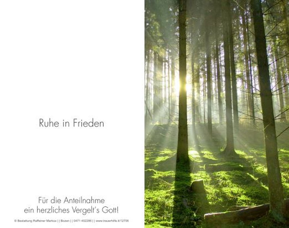 Ein besonderer Dank gilt den Ärzten und dem Pflegepersonal des Langzeitkrankenhaus Firmian für die liebevolle Betreuung. Ein herzliches Vergelt`s Gott Erika und Rudi für ihre große Hilfe in dieser schweren Zeit.