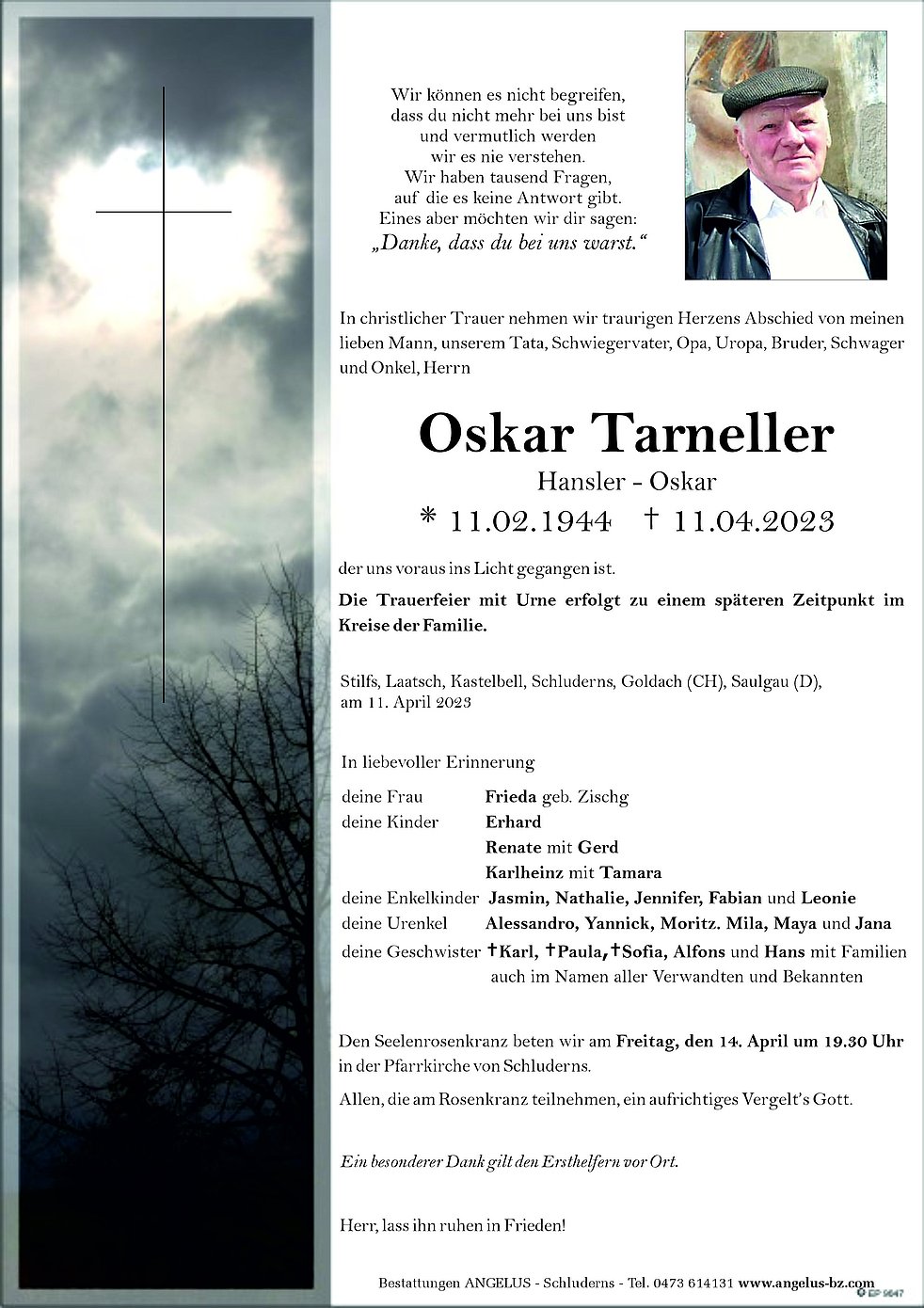 Es gibt ein Leid, das fremden Trost nicht duldet und einen Schmerz, den sanft nur heilt die Zeit.