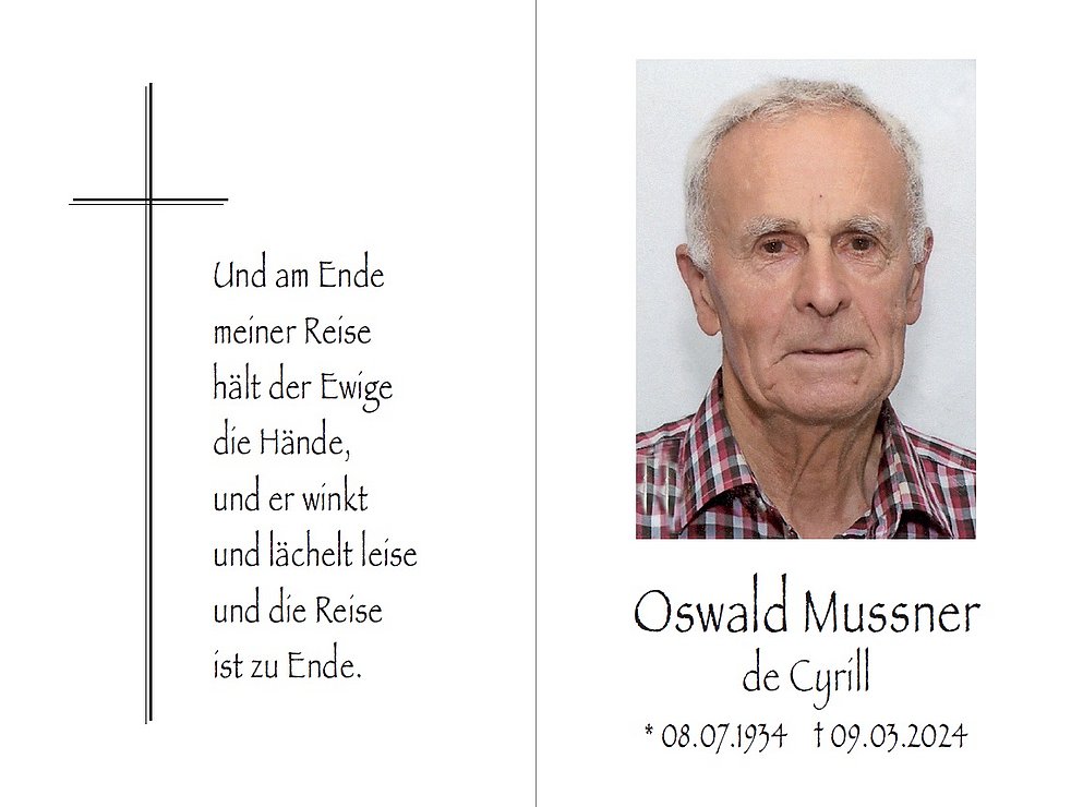 Den Trauergottesdienst mit anschließender Verabschiedung feiern wir am Montag, dem 11. März, um 14.30 Uhr in der Pfarrkirche von St. Ulrich.