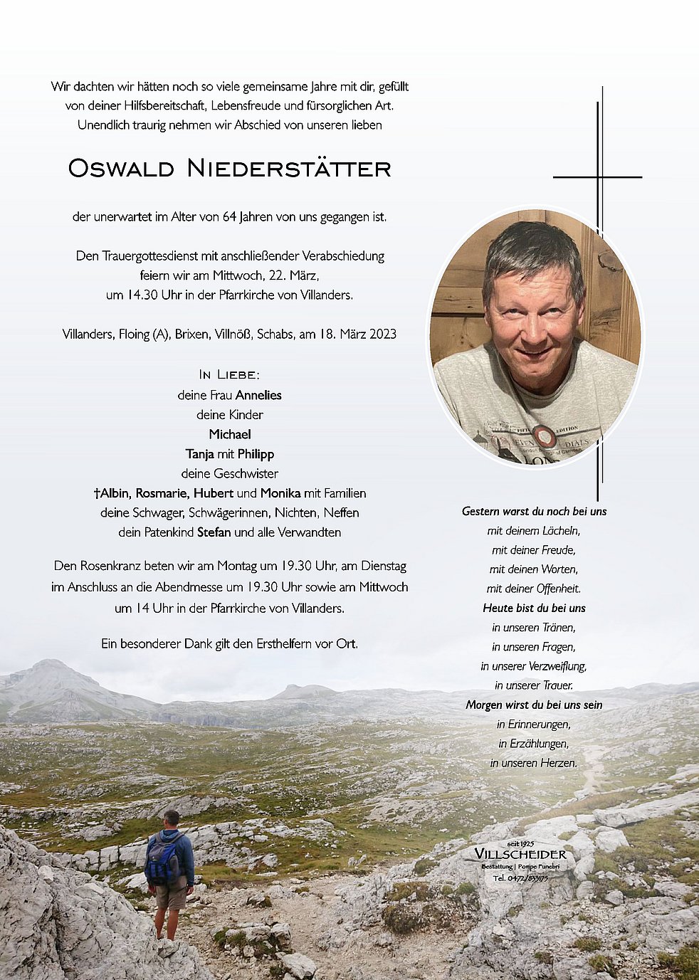 Hon Deine immer guate Laune bsunders geschätzt. Bei dor Orbet hobm mir in die leschtn Johr nimmor so viel mitanondor zi tian khopp. Umso mear gfreit hon i mi, wenn i Di mol wieder gseign hon. Mein herzliches Beileid in dor Familie. Ruhe in Frieden.