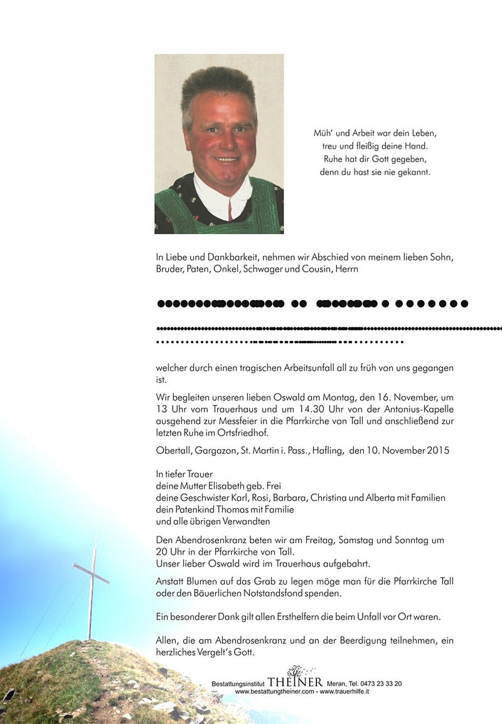 welcher durch einen tragischen Arbeitsunfall all zu früh von uns gegangen