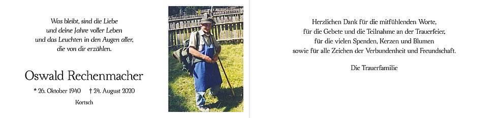 Schweren Herzens, aber dankbar für die schöne gemeinsame Zeit, müssen wir Abschied nehmen von meinem lieben Mann, unserem herzensguten Tata, Opa, Bruder, Schwager, Onkel und Paten, Herrn