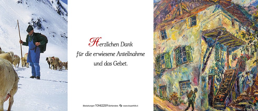 Wir danken dem Team vom Hauskrankenpflegedienst Sprengel Mittelvinschgau, besonders Moni und dem gesamtem Team vom Krankenhaus Schlanders, Abteilung Medizin für die liebevolle und fürsorgliche Betreuung.