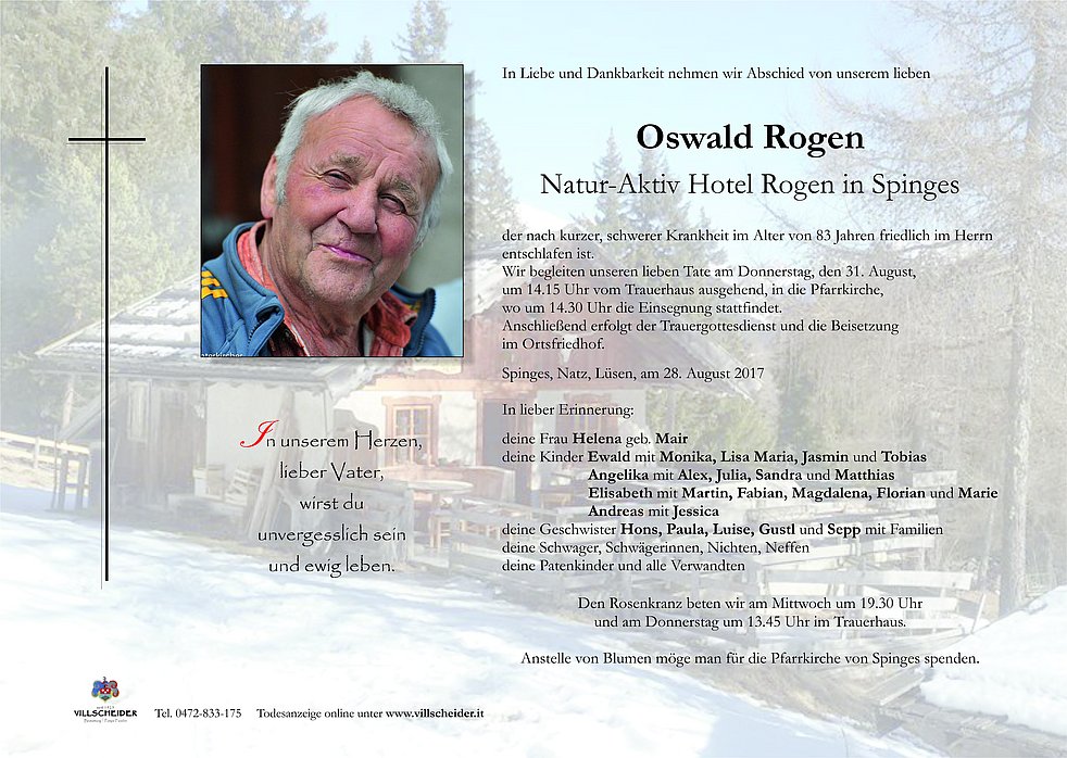 Anstelle von Blumen möge man für die Pfarrkirche von Spinges spenden.