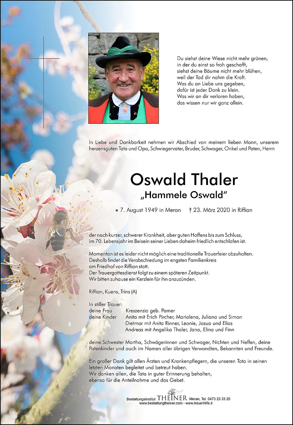 * 7. August 1949 in Meran † 23. März 2020 in Riffian