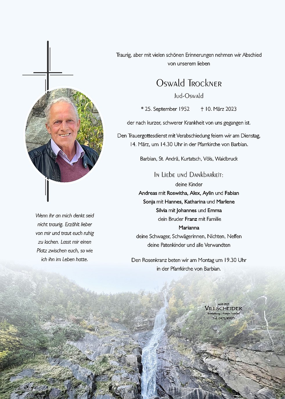 Herzliches Beileid,für den lieben Oswald,Daniela mit Familie