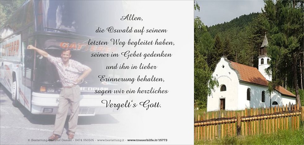 Ein besonderer Dank gilt dem gesamten Personal vom Wohn- und Pflegeheim Bruneck für die liebevolle Begleitung.
